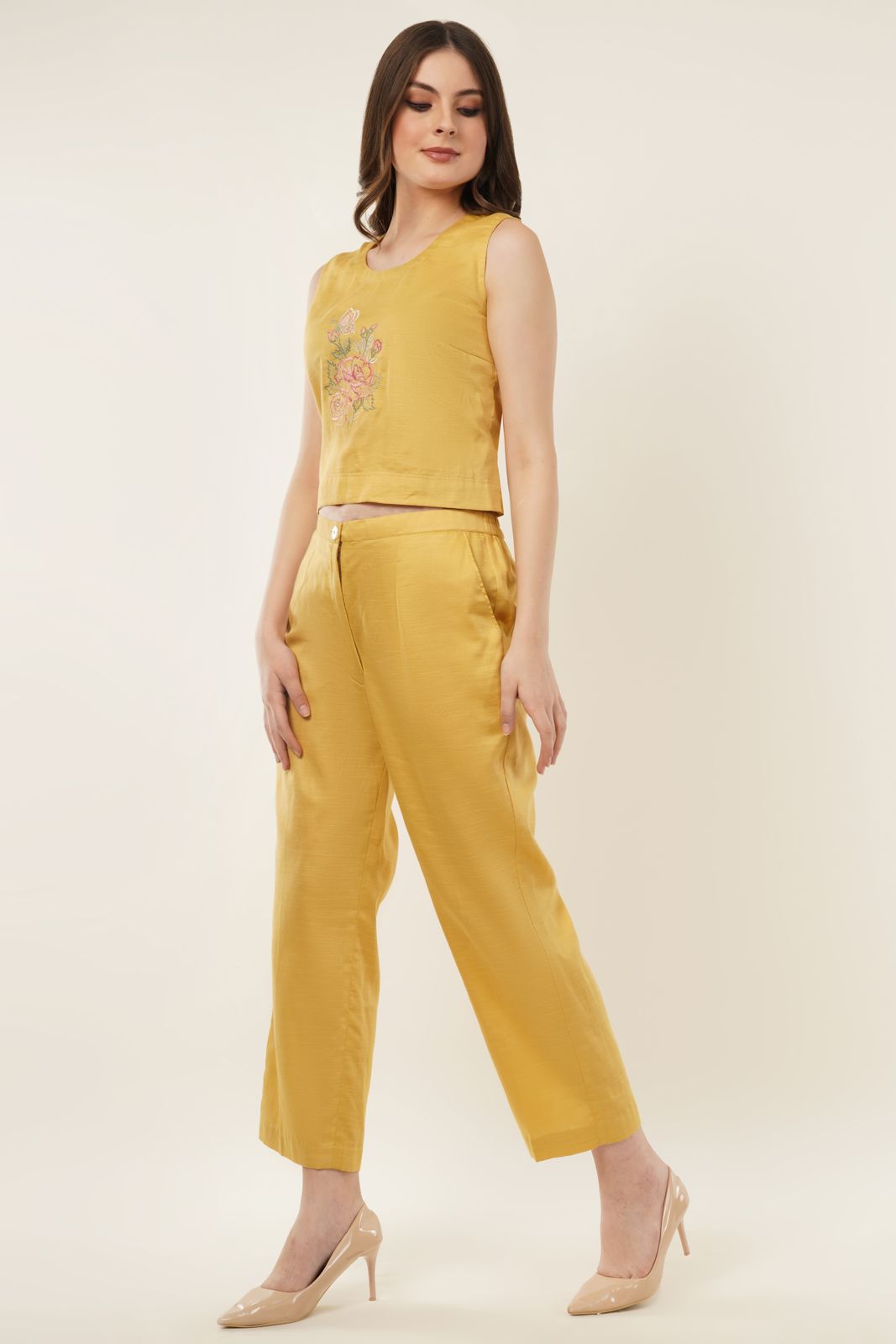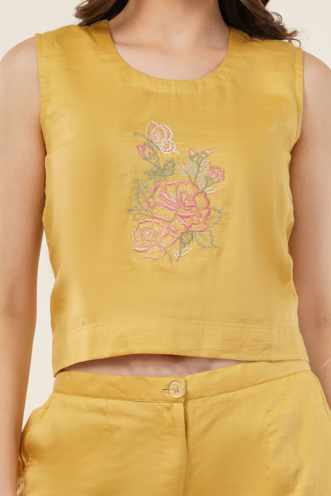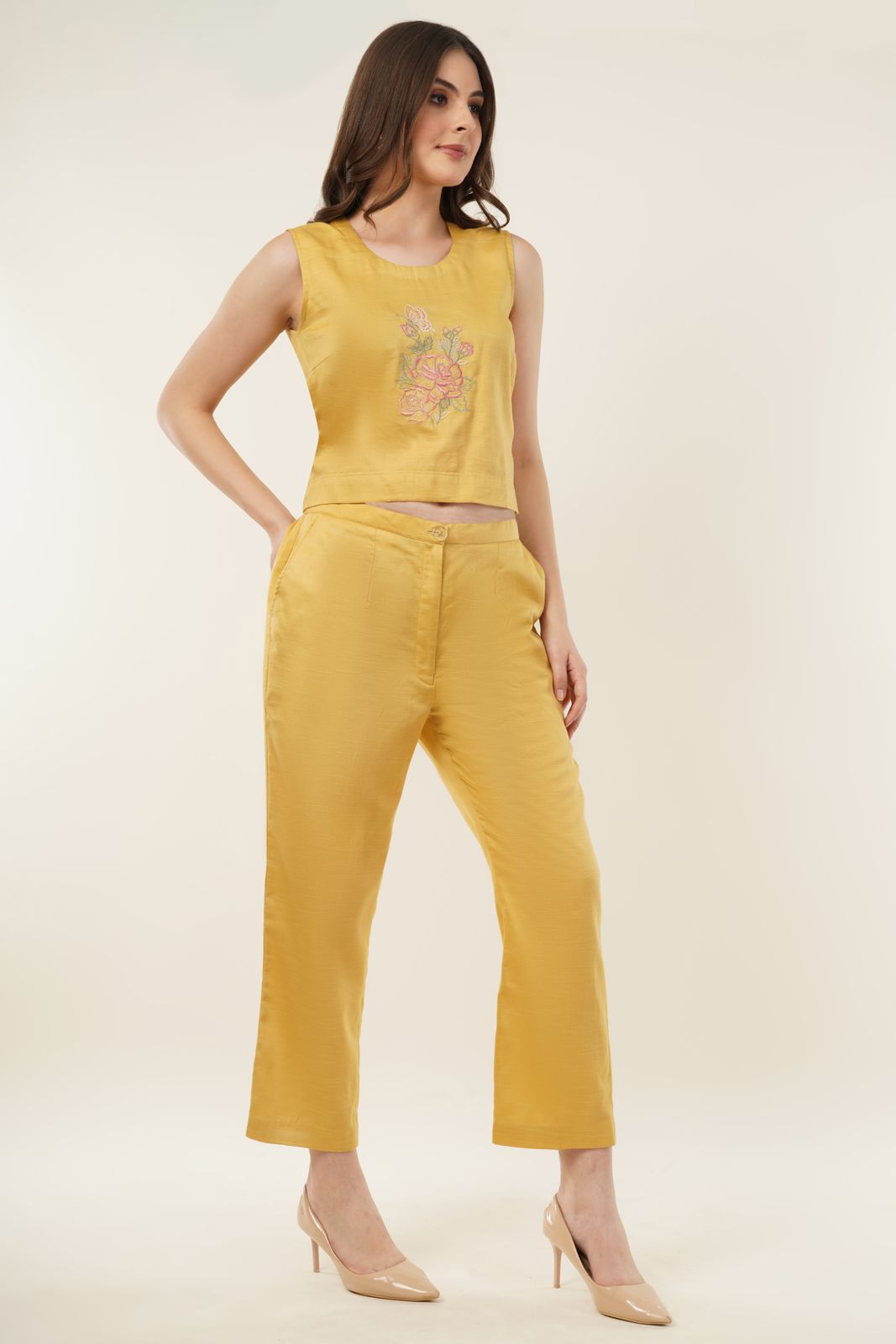 Yellow Embroidered Coord Set